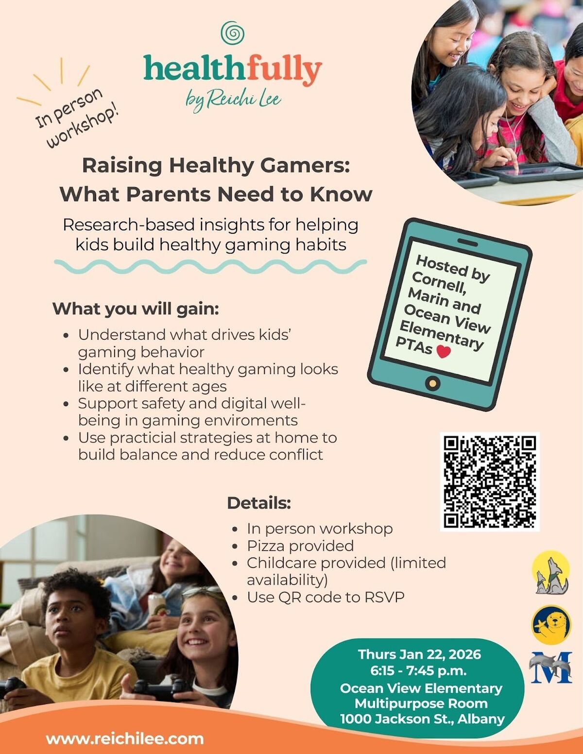 Unfortunately, we haven’t had any volunteers so the event will not happen this year, unless we hear from someone in the next week. If you can help, please email Tulay, tulaycan1@gmail.com, and Maren, marenrobinson@gmail.com.RAISING HEALTHY GAMERS: What Parents Need to Know