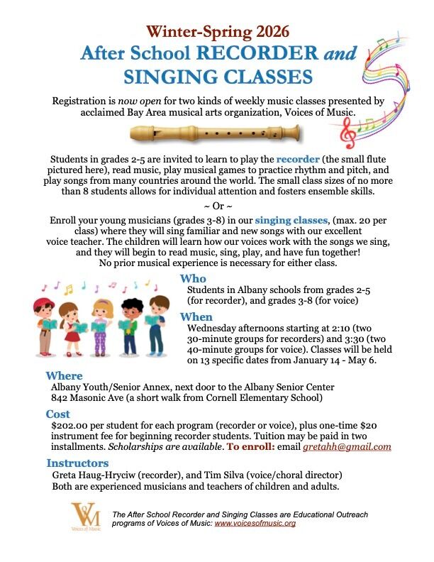 Voices of Music is offering two kinds of music classes starting on January 14, 2026: